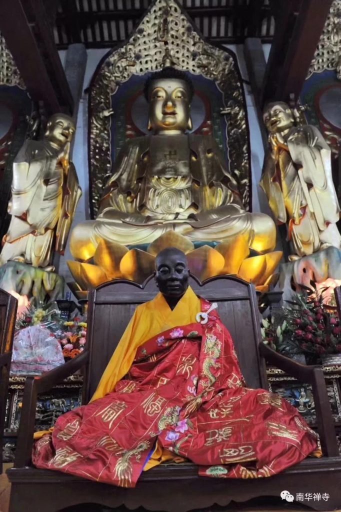 大师灭度之日,寺内异香氛氲,经数日不散。山崩地动,林木变白,日月无光,风云失色。八月三日灭度,至十一月迎和尚神座于漕溪山,葬在龙龛之内,白光出现,直上冲天,三日始散。韶州刺史韦据立碑,至今供养。
